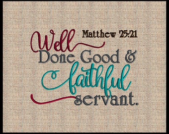 The phrase well done, good and faithful servant comes from jesus' parable of the talents in matthew 25.