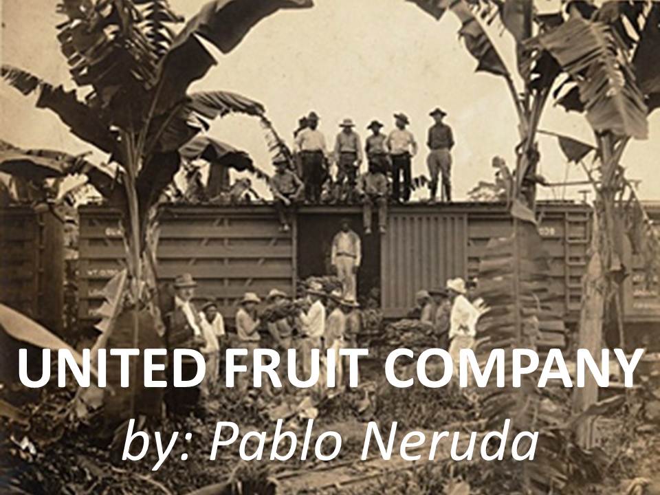 Recolectar el máximo capital posible a través de la invasión de países de latinoamerica. Ad for trip on united fruit company ship from philadelphia and baltimore to jamaica. The corporations are imagery of consumeristic propaganda (hawkins 43). The united fruit co., the poem by pablo neruda that will be analyzed in this essay, is enriched with symbolism, metaphors, and allusions.