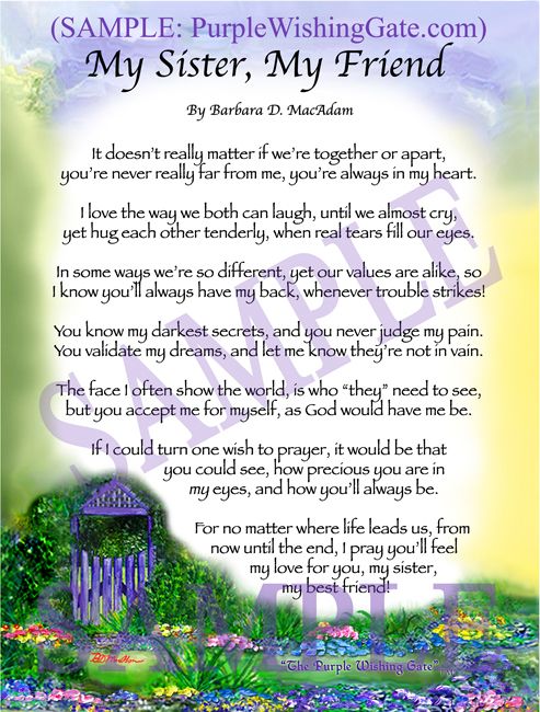 Download Best Sister Poems Pictures. Register now and publish your best poems or read and bookmark your favorite popular famous poems. These top poems in list format are the best examples of sister poems written by poetrysoup members.