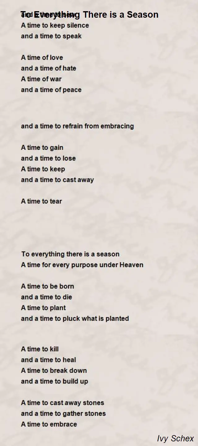 Download To Everything There Is A Season Poem Images. To everything there is a season. Ecclesiastes 3:1 for everything there is a season (ecclesiast.