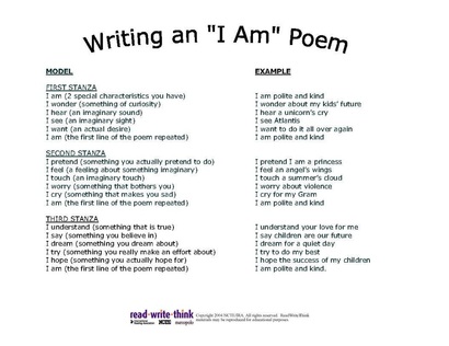 She says, spring will come again, my d. Write your own i am poem by filling in the text boxes. I can't count well and my answer on tuesday morning was very poor. After you finish and press the create it button, feel free to add or delete lines where you see fit.