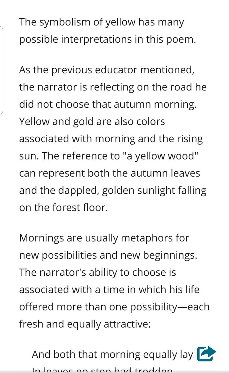 When you are deciding about what you think of the meaning of frosts poem the road not taken think also about his title. Two roads diverged in a yellow wood, and the word tread means (one of its meanings) to step on. so you can tread on the leaves as you walk along. The metaphor of the road is used persistently in the poem, and is therefore an extended metaphor. But appropriating portions of someone's work while ascribing your own meaning to it is wrong, especially.
