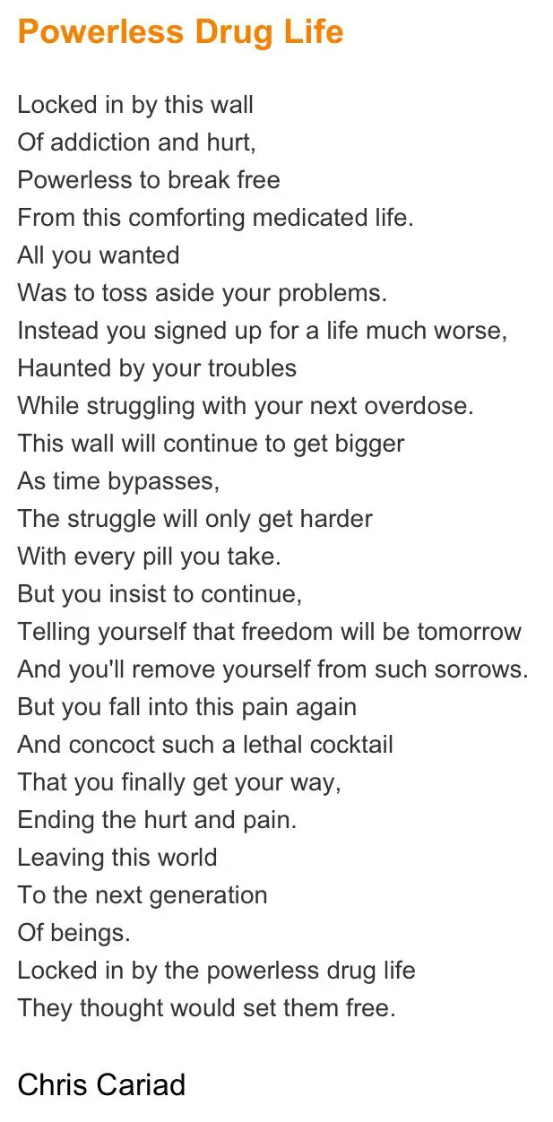 Read poems about drugs, alcoholism and addiction.